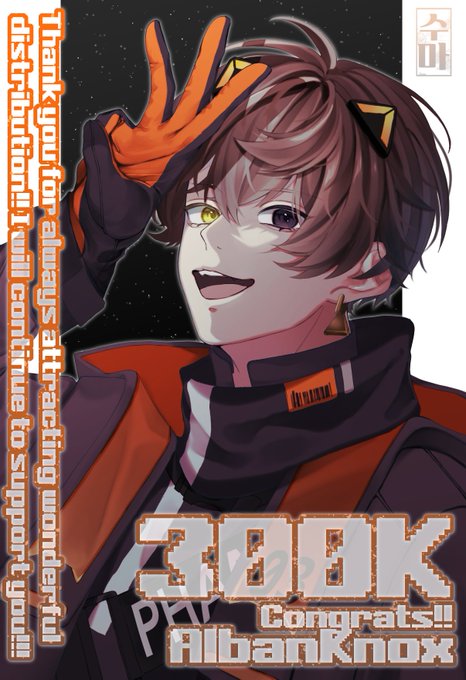 アルバーンてんちょー❣️ 300k Congratulation🥳🥳🧡🧡 配信も勉強もたくさんがんばってるアルバーンくん!! I’m really really respect you!!! いつもHappyありがとう!! だいすきだーーー🧡 #300Knox #AlbanKnoxArt