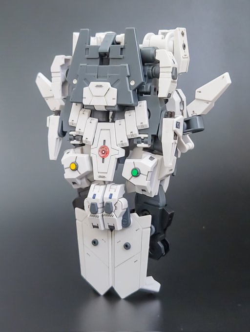 プログレッソ 純白の盾を思わせるディフェンスモードに可変するエグザマクス。物理、光学兵器を問わず鉄壁の防御を誇る。 胴体が観音開きに開くことで、天面のラインが綺麗になりました。 #30MM古代都市戦 #30MM地球連合軍