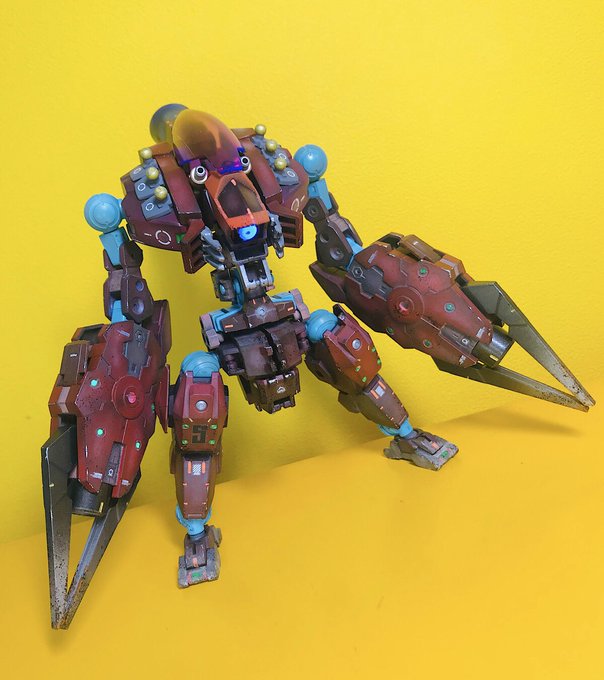 アビスノヴァ バイロン軍の水中用新型EXM。 新型の推進システムにより高い水中での航行距離、機動力を有している。武器は両腕の爪と背中のミサイル。爪にはさらに武器を持たせることが可能。 同軍某水中作戦用チームの試験運用を経て量産に至った。 #30MM海底都市戦 #30MMバイロン軍