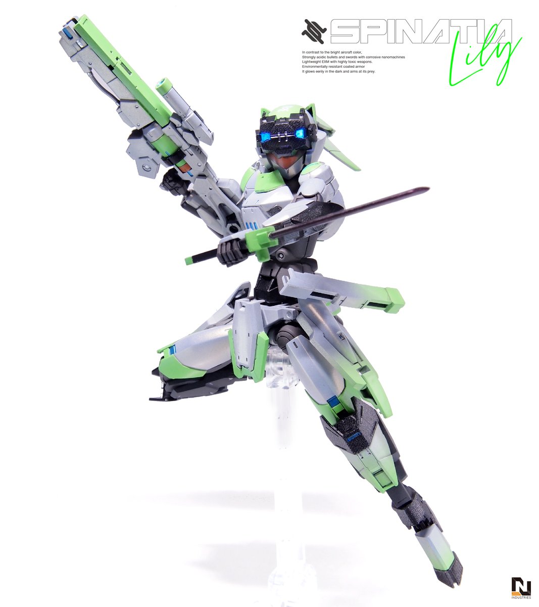 『スピナティア・リリィ』 鮮やかな機体色とは対象的に、 強酸性の弾丸や腐食性ナノマシンを纏った刀など 高い毒性の兵装を持つ軽量型EXM。 耐環境コーティングを施された装甲は 暗闇で不気味に発光し獲物を狙う。 #30MM火山惑星戦 #30MMマクシオン軍 #30MM