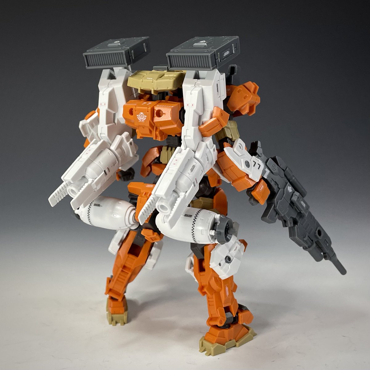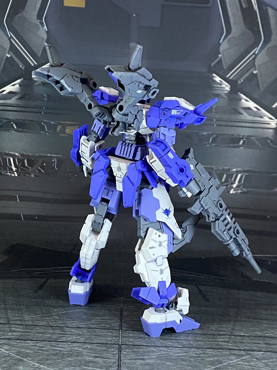 高機動陸戦型シエルノヴァ 脚部ローラと背部ブースターでの高速戦闘が可能な機体です。 肩部ブースターは姿勢制御やブレーキ等に使用します。 簡易的な変形での高速移動モードによる一撃離脱戦法も可能です……多分。 #30MM火山惑星戦 #30MMバイロン軍