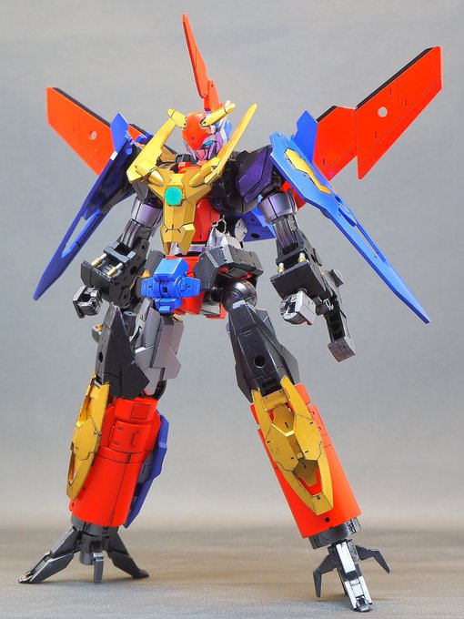 『オーロレイヴン』 連合のとある機体を解析して組み込んだ魔剣戦機レイオデットの発展型後継機。 さらなる機動力を手に入れた本機最大の特徴は、魔剣解放 戯曲最終番【ディアヴァル・カーテンコール】 魔剣そのものとなり全てを貫く。 #30MM火山惑星戦 #30MMマクシオン軍