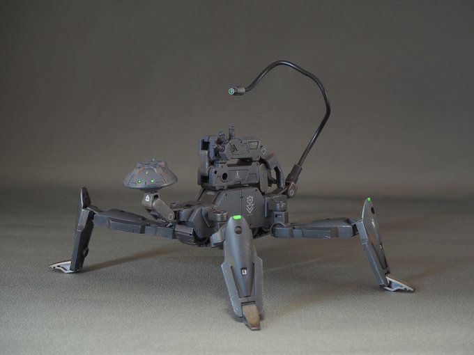 【クラン・クレーテ】 亀のようなクレーンのような何か。 脚部はフレキシブルに可動し火山惑星の悪路に対処できる。 折り畳むとコンパクトになる。 (尾の先端にクリアランナーを削ったものを使用) #30MM火山惑星戦 #30MMバイロン軍 #30MM