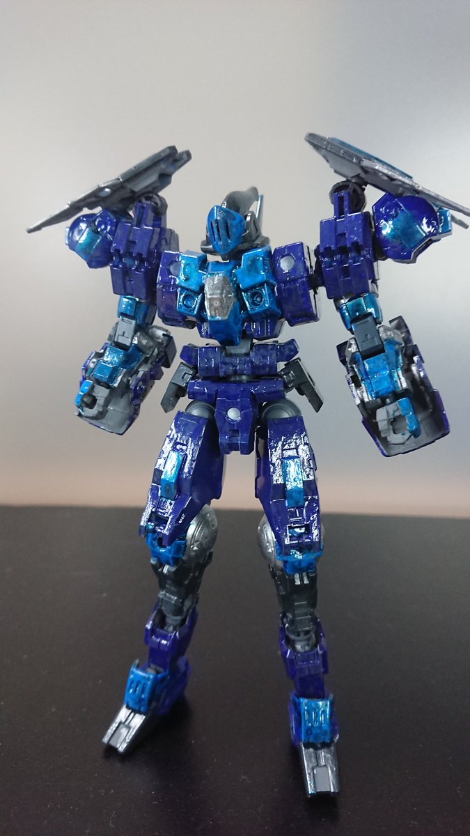 #今月作ったプラモ晒そうぜ #30MM #30MM火山惑星戦 毎日過去作投稿しているけど、 公式戦用に今月新規で作ったのは、 【ラビオット・ブレイクスルー】 【メルティス】 【インファイト・アズール】の3体。 新たに購入した本体とオプション数点のみの縛りのカスタムと 初めて筆塗りで全塗装頑張った。