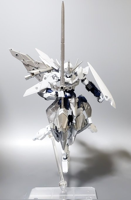 『スノウプライド』 騎士型EXM。 各部に装備された姿勢制御ユニット【ノブレス・オブリージュ】により、何時如何なる戦場においても高貴な姿で立ち振舞い続ける。 #30MMKC2 #30MMマクシオン軍