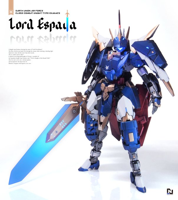 #30MMKC2 #30MM地球連合軍 『ナイト・ペンドラゴン』 砂漠都市戦時、欧州A王国軍技術開発部によって開発された第一世代の騎士型EXM。 様々な派生機の雛形でもあり、今尚改修を重ねて現役で稼働する。 マクシオン騎士団襲来に即応する為、騎士団を率いて本国の防衛線に配置される。