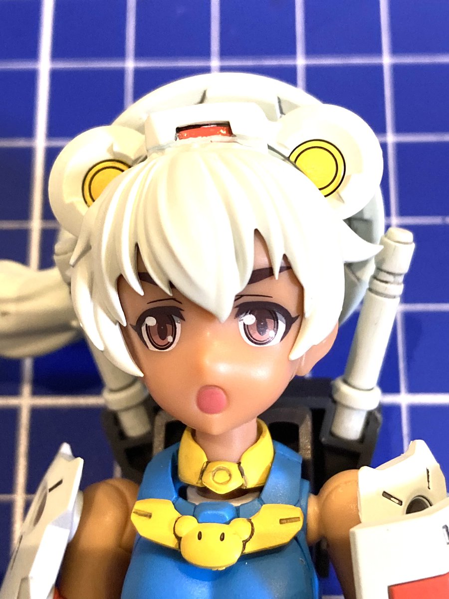 ルルチェの瞳を青色に^_^ 30MSの水転写シールのルルチェの瞳を使用。瞳と眉毛をキットのフェイスパーツの上に貼りました。 キット(右)、転写シール(左)です。 30MSシリーズをナナハチガンダム化計画進行中。 #30MSが好き #ガンプラ好きと繋がりたい