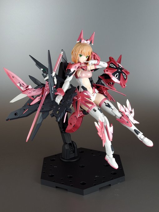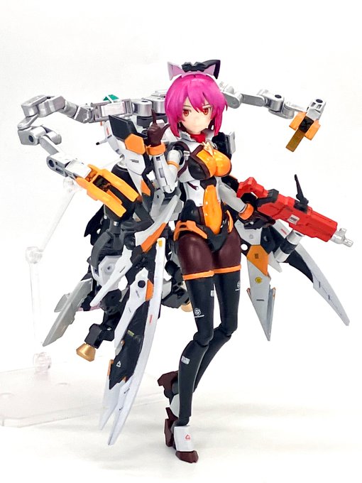 ネコ型シスター「アザミ」完成しました! 猫又をモチーフとした彼女は白衣のサイエンティスト。 ネコ型のサポートメカと合体し 姉妹の装備の整備・開発を行う写真のエンジニアモードから 実践データ収集用のバトルモードへ変形します。 #30MSの波に乗れ