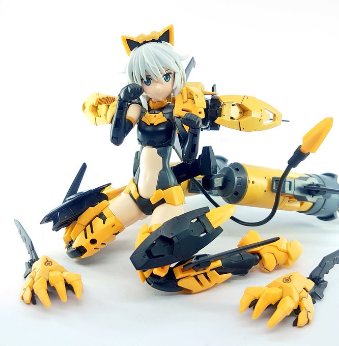 ネコ型シスター「アザミ」完成しました! 猫又をモチーフとした彼女は白衣のサイエンティスト。 ネコ型のサポートメカと合体し 姉妹の装備の整備・開発を行う写真のエンジニアモードから 実践データ収集用のバトルモードへ変形します。 #30MSの波に乗れ