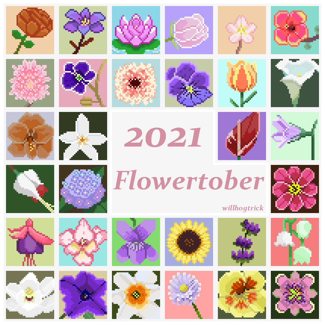 Made a final montage with all my flowers for inktober ❤️ #32px #Inktober #inktober2021 #pixelart #pixelartist #art #pixeltober