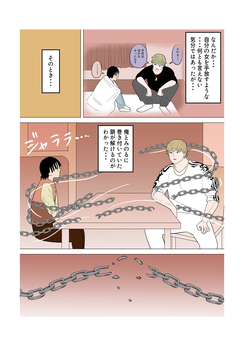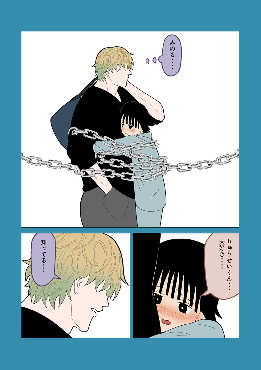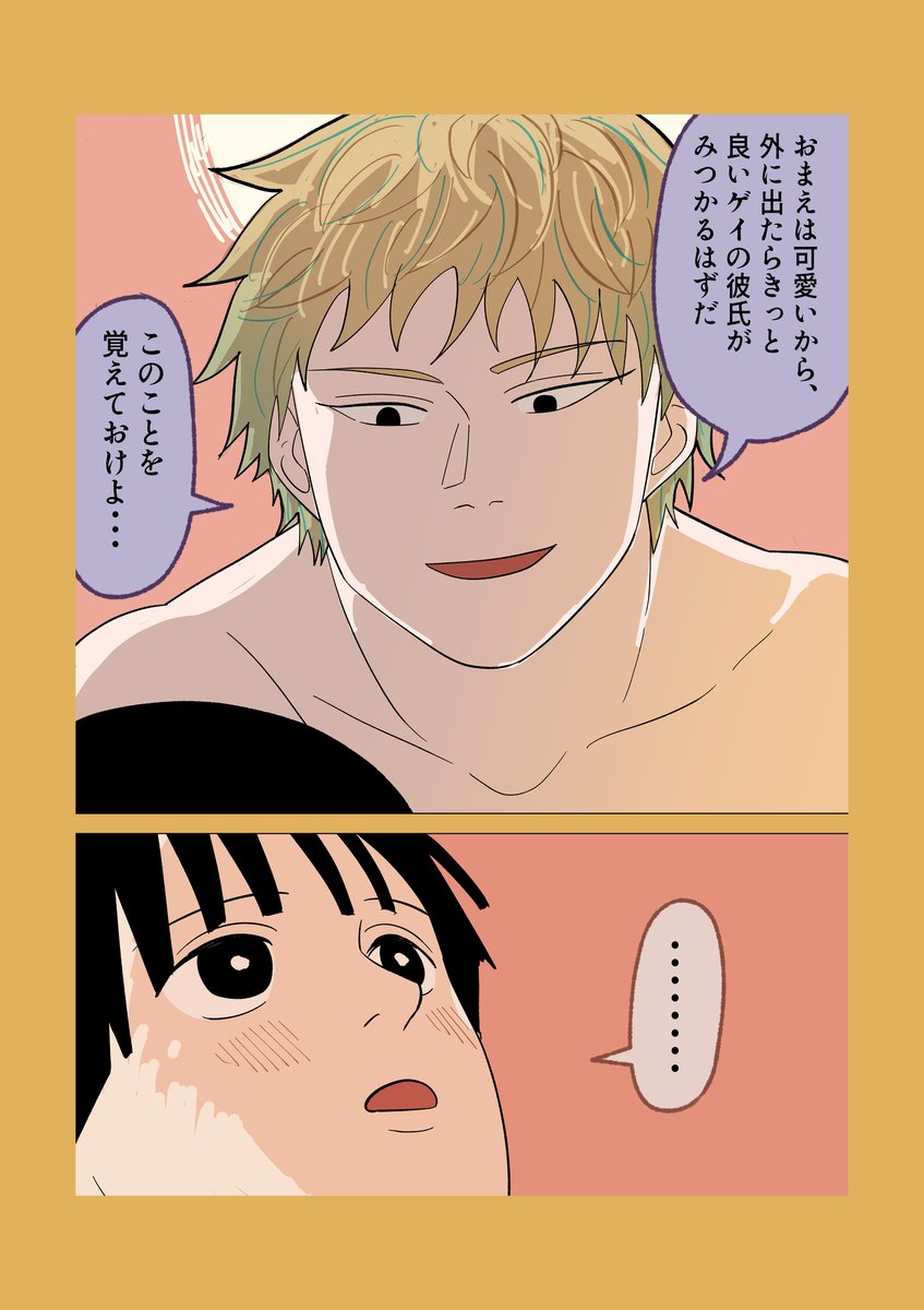 【 #35ツイート後に鎖が解ける話】 20ツイート目 竜星の願いは、みのるが自信をもち、竜星がいなくても生きていけるようになること。 みのるを可愛がっていても、ノンケなんで、みのるのすべてを守るわけにもいかず・・・難しいところです #創作BL #創作BL漫画