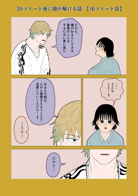 【#35ツイート後に鎖が解ける話】 13ツイート目 最後にできること・・・とは・・・? フォローしてくれたら基本その日のうちにフォロバします!(^^)!よろしく! #創作BL #創作BL漫画