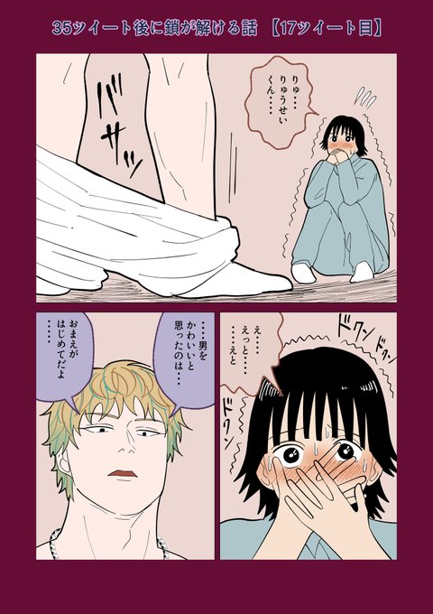 【 #35ツイート後に鎖が解ける話】 32ツイート目 残りあと3ツイートで完結ですが、 明日(12月31日)と明後日(1月1日)は竜星の漫画を休みます! よろしくお願いいたします! #創作BL #創作BL漫画