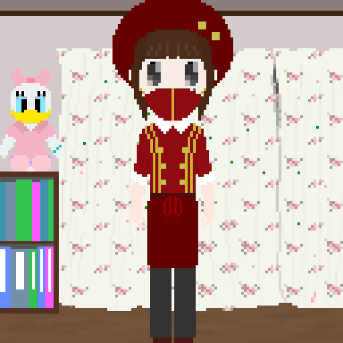 12月2日は #ブリトニー・スピアーズ さんのお誕生日でしたので 2003年に発表された『Toxic』のMVでみせたキャビンアテンダントの衣装で、ろりめるさん(@rorimel_s2)を描いてみましたおぅん! #365日365ろりめるドット絵 #173/365 #ドット絵 #pixelart
