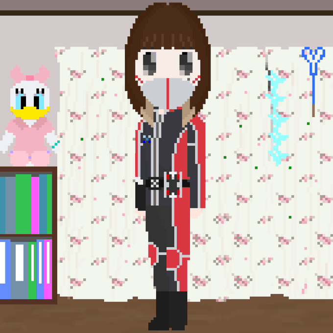 明日1月6日は #菊地凛子 さんのお誕生日ですので 2013年公開の映画『#パシフィック・リム』で演じた森マコのコスチュームで、 ろりめるさん(@rorimel_s2)を描いてみましたおぅん! #365日365ろりめるドット絵 #205/365 #ドット絵 #pixelart #やっつけ仕事🙏🙏🙏
