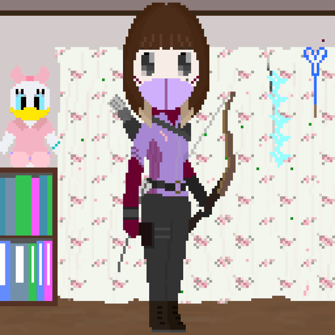 12月11日がお誕生日だった #ヘイリー・スタインフェルド さんが2021年より #ディズニープラス にて配信された『#ホークアイ』で演じた #ケイト・ビショップ とろりめるさん(@rorimel_s2)を勝手にコラボしてみたおぅん! #365日365ろりめるドット絵 #189/365 #ドット絵 #pixelart