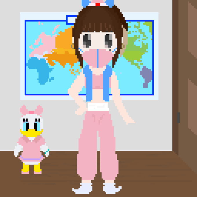 『#ハクション大魔王2020』に登場した大人になったあくびちゃんとろりめるさん(@rorimel_s2)。を勝手にコラボしてみたおぅん! #365日365ろりめるドット絵番外編 #ドット絵 #pixelart