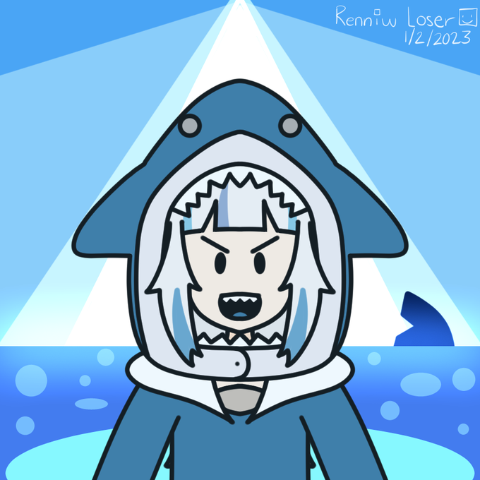 Day 2: Gawr Gura of #Hololive, specifically #HoloMyth or #HololiveEN Gen 1. #GawrGuraIcon #gawrt #gawrgura #ENVTuber #VTuberEN #ホロライブ #chumbuds #shark #shork #365DaysChallenge