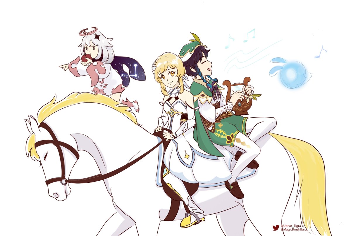 Something easy Also Mihoyo horses when bring them back to the world and let us ride #1page1day #1p1d #365art #ArtistOnTwitter #genshinimpactfanart #GenshinImpact #Venti #Lumine #venlumi #lumity