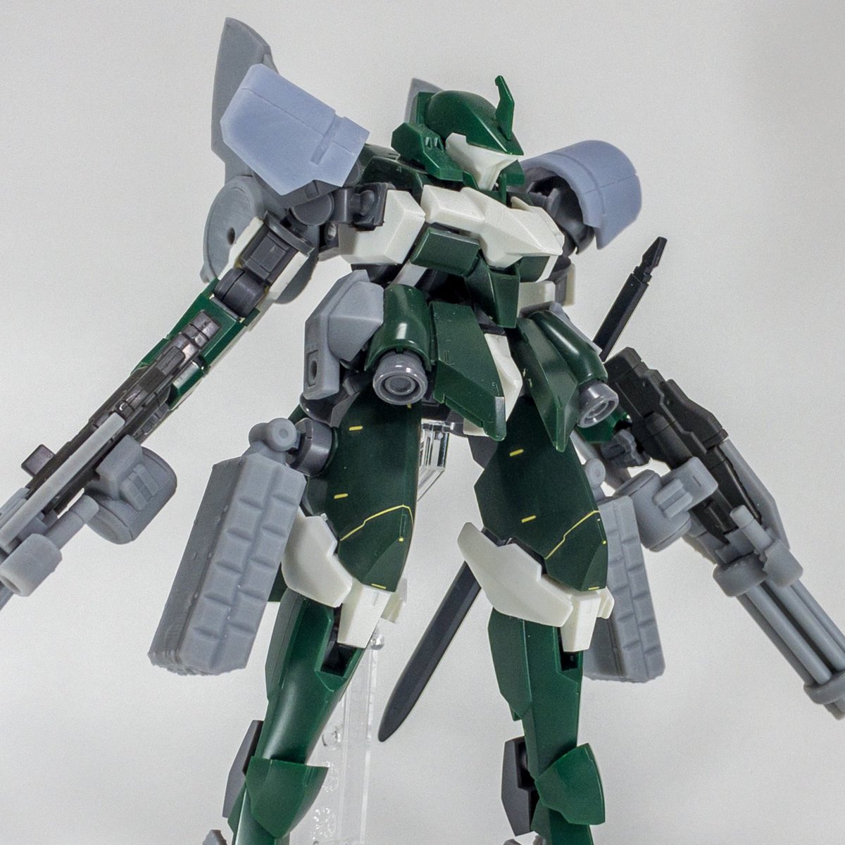 ゲイレールハウンド(2機目)完成しました。量産機は複数並べたい性分なので、前回と全く同じものを作ってます。1機で飾るより量産機感が出ていい感じになりました。 #g_tekketsu #ガンプラ #3Dプリンタ