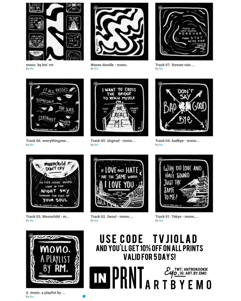 Added these to a shiny new collection on my inprnt sh0p! AAAND to celebrate mono I created a sale code so in the next 5 days you can get 10% off on all prints from my sh0p! ♡Code: TVJIOLAD ♡Link to the mono collection: inprnt.com/collections/ar… #btsfanart #mono #3YearsWithRMono