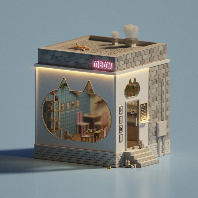 Please enjoy my little Cat Café creation 🐱🐈 Definitely one of my favourites to make! #magicavoxel #voxelart #3dartwork #Cat #cafe #cute
