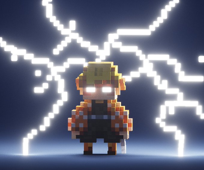 now zenitsu with his best rays 😍 #voxel #voxelart #tanjiro #inosuke #kimetsunoyaiba#magicavoxel #art #nftart #3d #kimetsunoyaiba #zenitsu #character #3dvoxel #thesandbox #thesandboxgame @TheSandboxGame