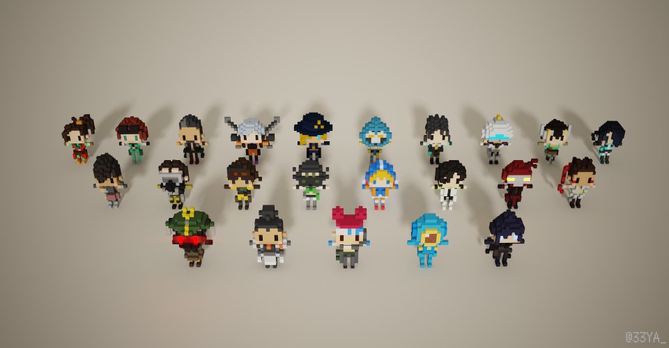 レジェンド達が好きすぎてドット絵をかきまし…騙されたな! ボクセルレジェンド達を作りました。 Does it look like just pixel art? "You got bamboozled!" Actually, it's made with voxels. #ApexLegends #ApexLegendsFanart #voxelart #3Dvoxel