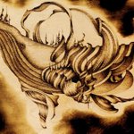 #4月なのでフォロワーさんに自己紹介しようぜ 線と色で表現した絵を描いてます_✍ #art #artwork #pyrography #mixedmedia #frog #whale #カエル #クジラ #絵柄の振れ幅見せて