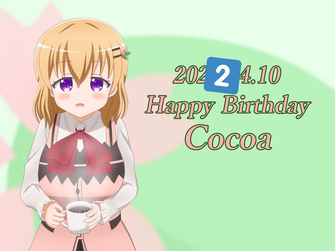 ココアさん、お誕生日おめでとう🎉🎂🎁☕ 絵は再掲になっちゃうけど、ココアさんを祝う気持ちは今年もいっぱいだよ😆 #ココア生誕祭 #ココア生誕祭2022 #保登心愛生誕祭2022 #4月10日はココアの誕生日