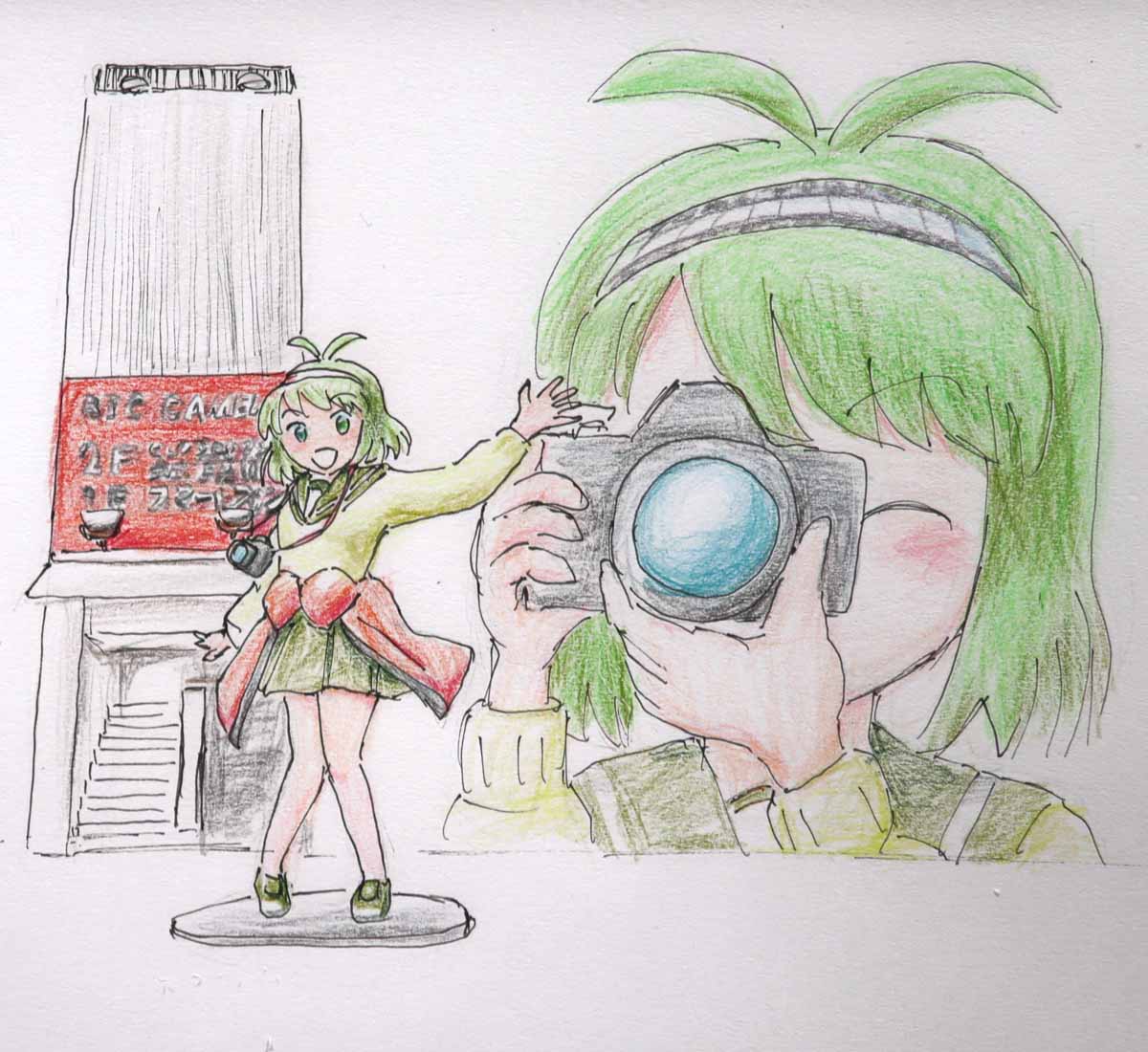 4月10日は「フォトの日」で、プロスタたん(@bic_shasinkan)の誕生日です。 記念に、写真を撮影するプロスタたんを描きました。 おめでとうございます!\(^o^)/ #4月10日はフォトの日 #4月10日はプロスタたんのバースデー #ビッカメ娘を描き隊