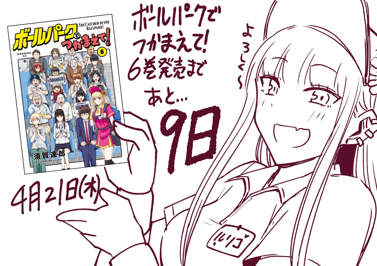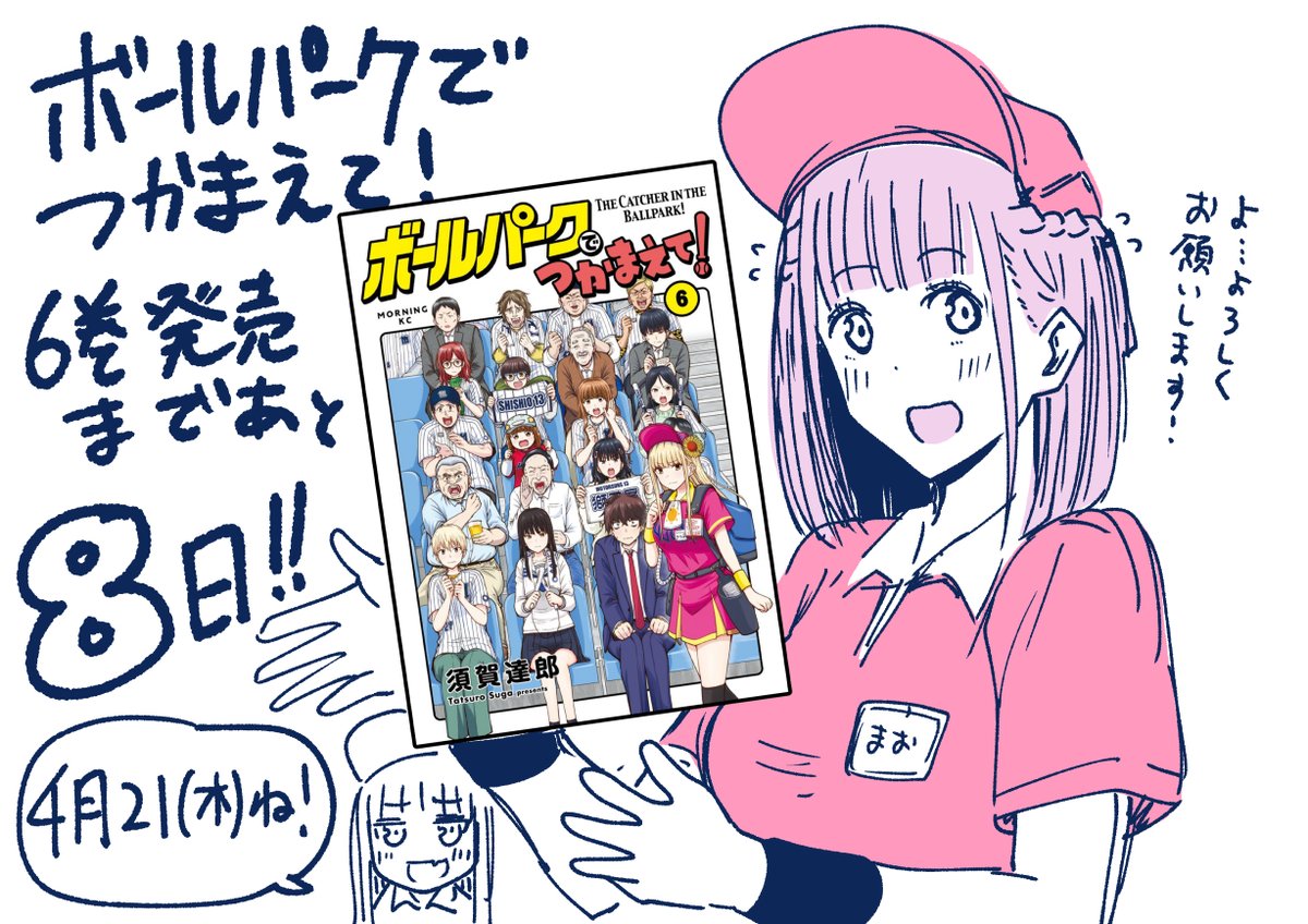 ボールパークでつかまえて! 6巻発売まであと1日。 ついにプロ野球でいうとマジック1です! 店舗特典でカラーイラスト、さらにおまけもたくさん収録されています。お楽しみに! #4月21日 #ボールパークでつかまえて