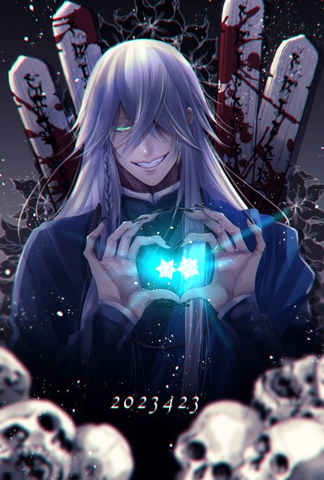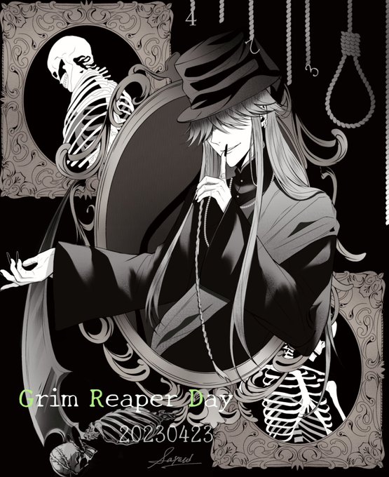 過去絵ばかりで申し訳ないのだけれども;、お祝いにこっそり混ざらせて下さい…! 生を見てエリックに一気に転がり落ちた頃の落書きと、葬儀屋の落書き。 死神みんな個性豊かで魅力的ですよね…!v #4月23日は死神派遣協会の日