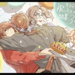 滑り込みぶんとさーーー!! 4年も狂ってるんか……!! 先生と肥前くんの左右位置間違ったけど気にしないで。 #南海太郎朝尊実装四周年 #肥前忠広実装四周年 #4月24日は特命調査文久土佐藩開幕記念日