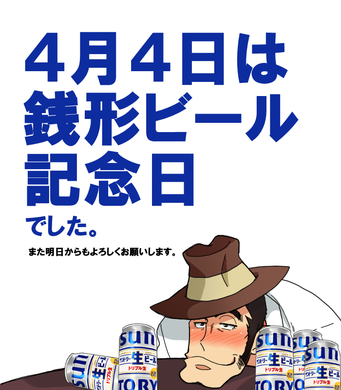 #4月4日は銭形ビール記念日 ご参加ありがとうございました!本当にたくさんの方にご参加いただけてうれしかったです。 なお、4/4以降もこちらのタグをつけての作品投稿はしていただいて構いませんどころかむしろぜひお願いしたいので、どんどんつかってください~!🍻 全員優勝!!!