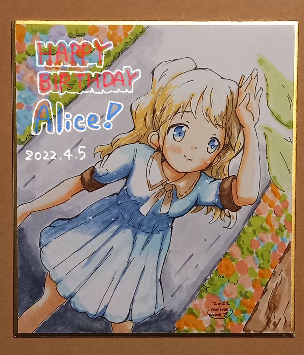 アリスちゃんお誕生日おめでとう。今年は色紙を描きました。いつもその笑顔に癒されています。来年こそはもっと可愛く描けるように頑張ります。 #アリス・カータレット生誕祭2022 #4月5日はアリス・カータレットの誕生日 #kinmosa