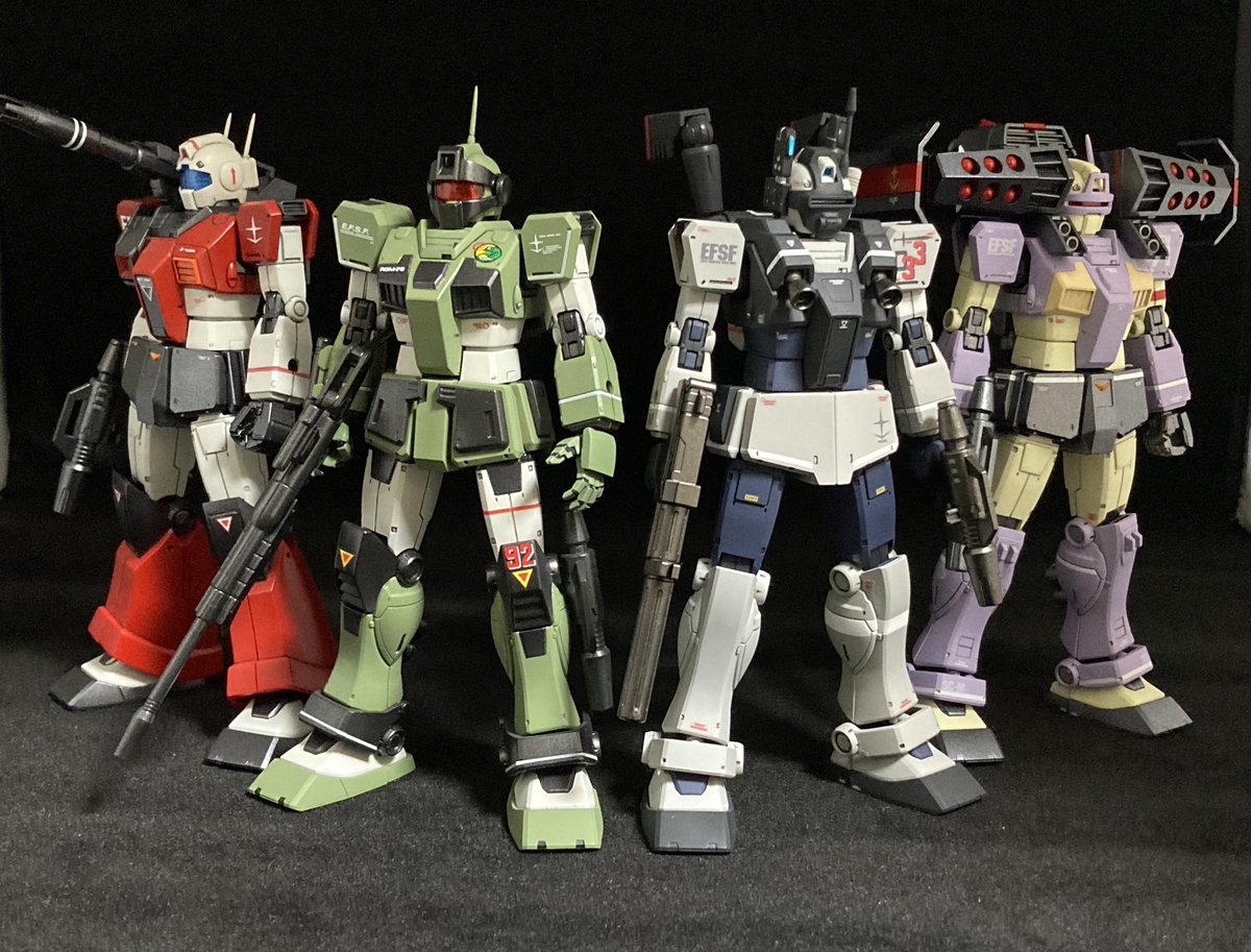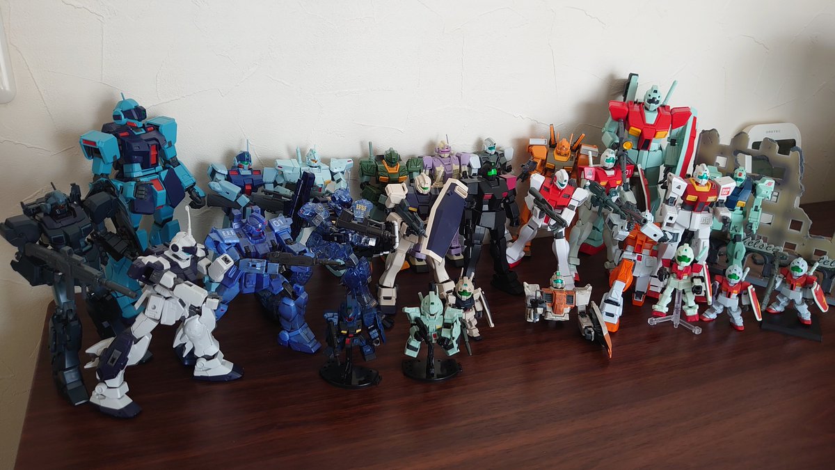 #4月6日はジムの日 #ジムの日 残りのジムも。 ジムも全然店舗では見かけなくなりましたね、ザクの日の時も思いましたが、ザク系、ジム系の量産機は何体も作りたくなるので普通に購入できるように早くなって欲しいですね。