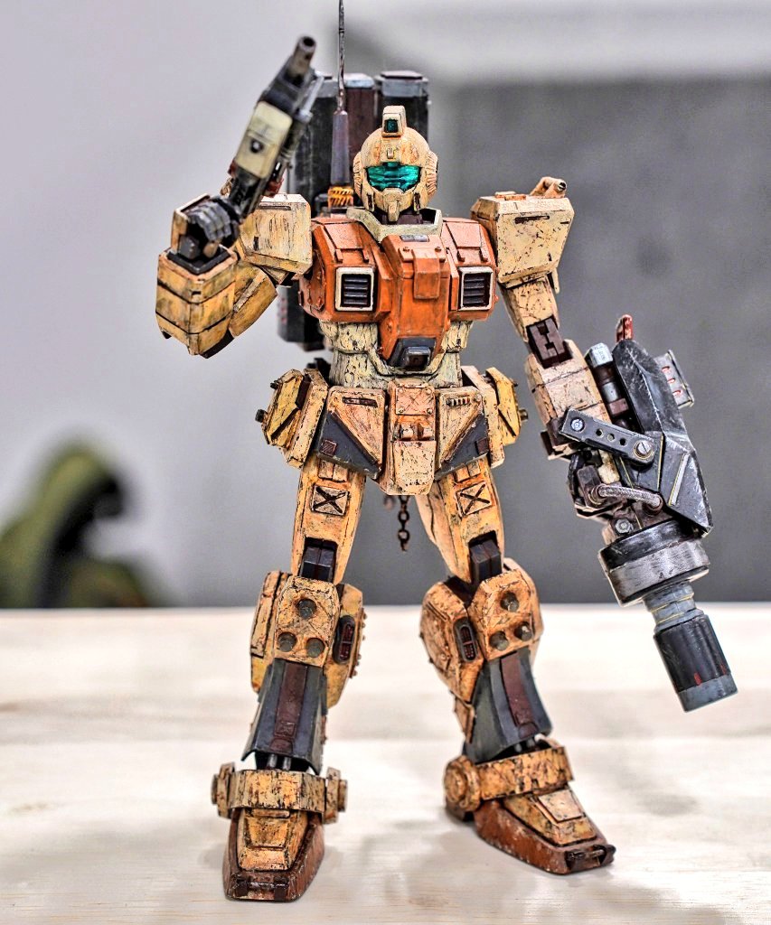 【HGジム改 完成】 なんとか間に合いました!元キットに比べ、スタイルを大きく変更したつもりです😊ディテールを追加し、グラデーション塗装→汚し仕上げでフィニッシュです! コンペ参加作品でもあるので宜しくお願いします☺️✨ #4月6日はジムの日 #ジムの日 #嵐の中で輝く杯