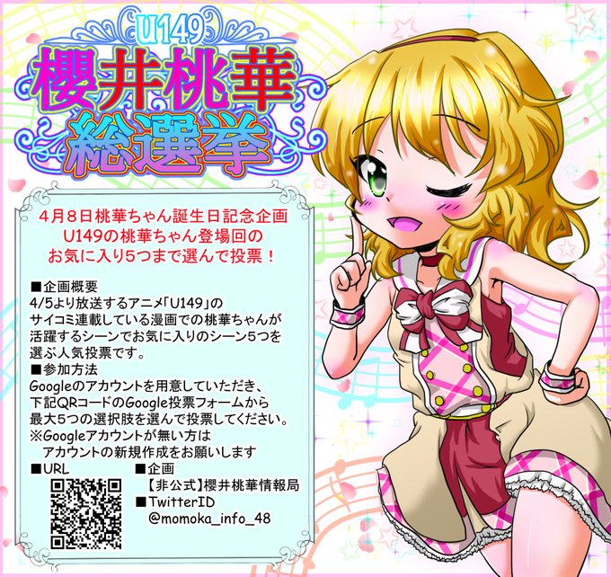 4/8桃華ちゃま誕生日記念U149櫻井桃華総選挙やるよ! #櫻井桃華 #アイドルマスターシンデレラガールズ #4月8日は桃華ちゃまの誕生日 #U149 pixiv.net/artworks/10656…