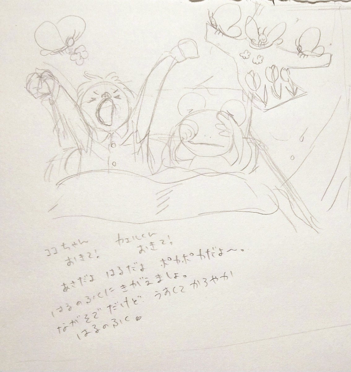 #4枚物語 娘が小さい頃に描こうと途中になってたお話を描こうかなと思っています。 今回もココちゃんとカエルくんが登場。 お花いっぱいの季節の服装のお話…上手く描けるといいな。 #お絵かき好きさんと繋がりたい #絵本 #イラスト好きさんと繋がりたい