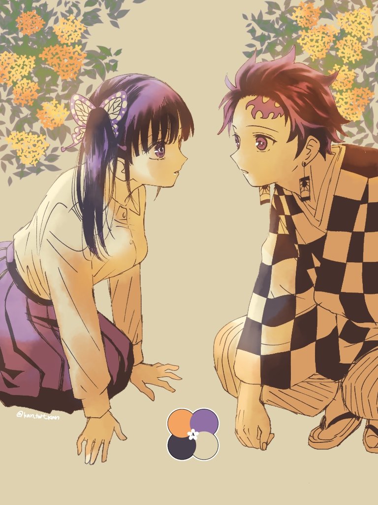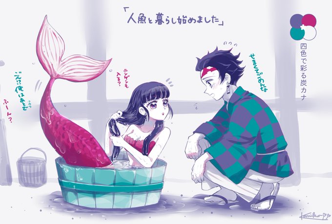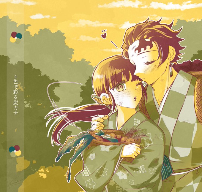 #4色で彩る炭カナ @4colortankana もう一つの落ち着きパレットでは対象軸和装で! アニメで痛々しく傷つく彼らを見る度、「穏やかで幸せな日々がはよ来てくれ!!」と思ってる😭 #炭カナジューンブライド