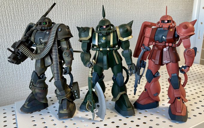 #4連休なので皆のザクを見せて欲しい #お正月プラモ・イラスト交流会 見てやって下さい。 白、黒、緑... 赤は居ませんね( ´∀`)... #ガンプラ #ガンプラの画像貼るとRTされると聞いて
