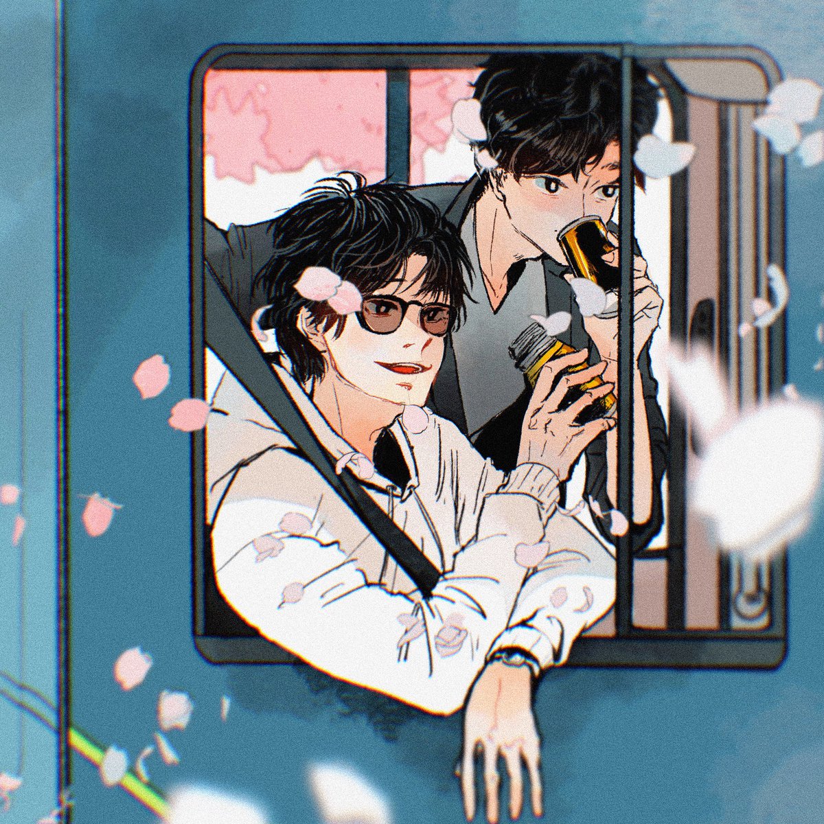 「メロンパン号乗ってさ、志摩と桜眺めてる夢見たんだよね。懐かしいよな〜メロンパン号元気かな〜」という夢の話。 #404桜前線2023 #MIU404イラスト企画 ※以前上げたものを桜仕様に加筆修正(どの絵かわかった方は見比べて間違い探ししてみてね…) ※タグお借りしました〜!