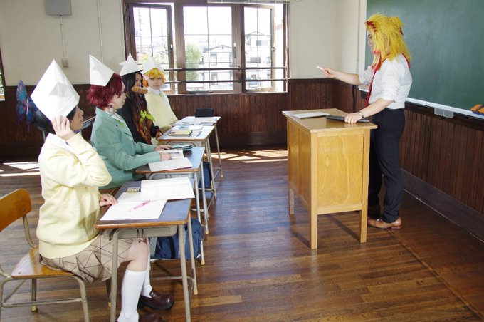 ⚠︎cosplay キメツ学園!/ 煉獄先生と生徒陣🏫 ※レイヤー様はリプにて 📷:善右衛門さん(@munch9419 ) _____________ 煉獄先生の歴史の授業で正解した炭治郎、大満足💮 この後花丸になります☺️ #40925二葉キメ学 #コスメルin旧二葉小学校