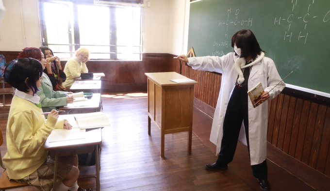 [Cosplay] キメ学/ 化学教師伊黒🐍 📸&板書✨ @DAI47K #40925二葉キメ学 綺麗に撮って貰うだけでなく板書(化学式)まで助けて下さった万能カメラマンだいさん😭✨ありがとうございました🙏✨