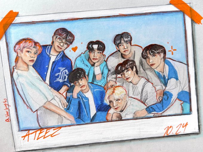 I'm a bit late in kst but it's still ateez day for me! I've been working on this drawing set since The Real came out and I just finally finished today! happy 4th anniversary to @ATEEZofficial #ateezfanart #4everwithateez