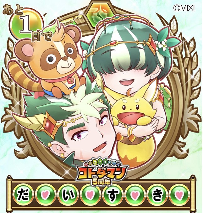 #コトダマン #コトダマンごえんがあって5周年 #5周年コトダマアート 「リーフに先を越されました!今からチカラを授けます、盛大にお祝いしてください!!」 「「「「雑!!!!(あと狭い!)」」」」