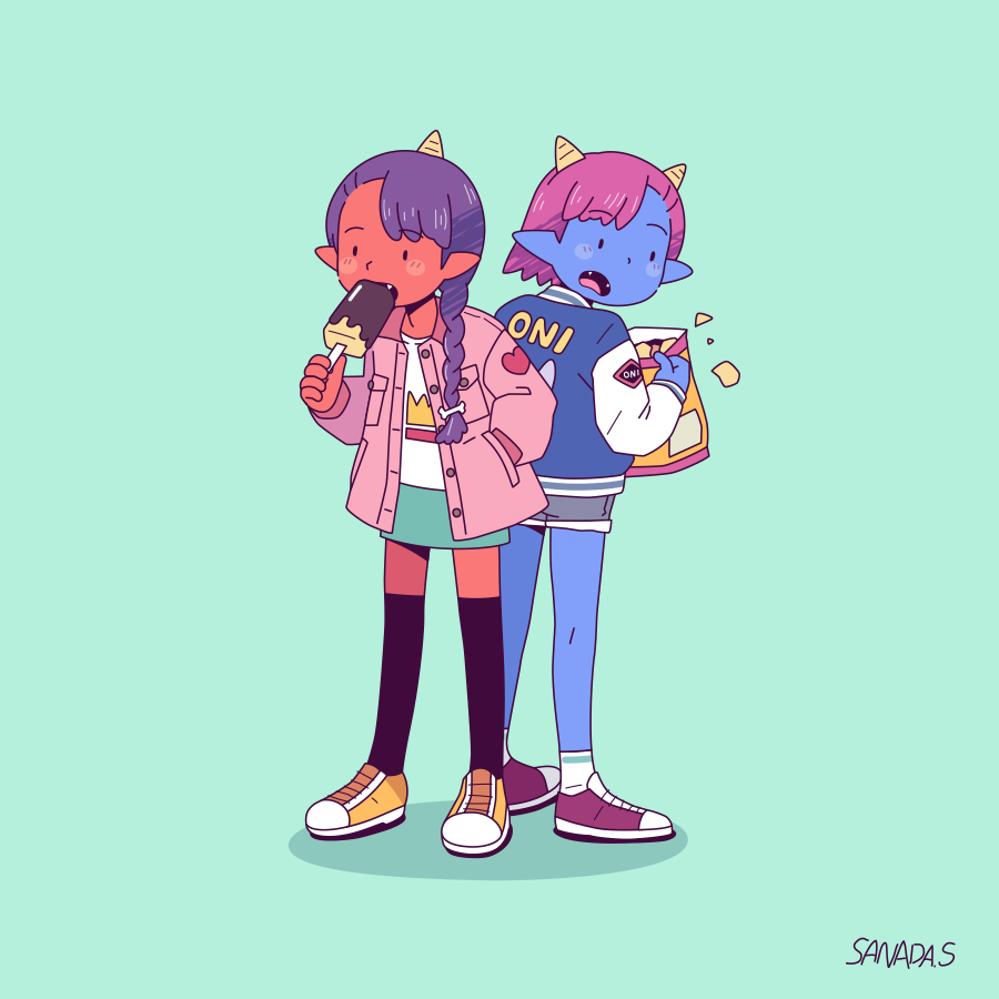 #5月になったので自己紹介 基本異形の死神ちゃんという人外を、たまに男の娘を描いてる和菓子でございます(๑´ڡ`๑) 彩度高めで性癖に従順に好きなように描いております、たまに企画やってるのでよかったら参加してくだせえ👍👍👍 ちなみに先月115枚描きました(^ρ^)