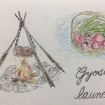 「アウトドア」「おいしい」 現パロ?キャンプ飯 驍宗 手作りトライポットで吊し肉 川で冷やした野菜 阿選 友尚が持ってきた魚介でパエリア 泰麒の為にラタトゥユ(レミーの美味しいレストラン風) #5月の阿驍ワンドロライ企画 あれ?私は何を…
