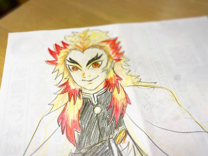 本日、5月10日は 【鬼滅の刃】煉󠄁獄杏寿郎の誕生日🔥 昨年、Twitterで煉獄さんのお誕生日だと知り 似顔絵を描いてみました♪ 意外と似てると思うんです(•ㅂ•)و #鬼滅の刃 #5月10日は煉󠄁獄杏寿郎の誕生日 #色鉛筆